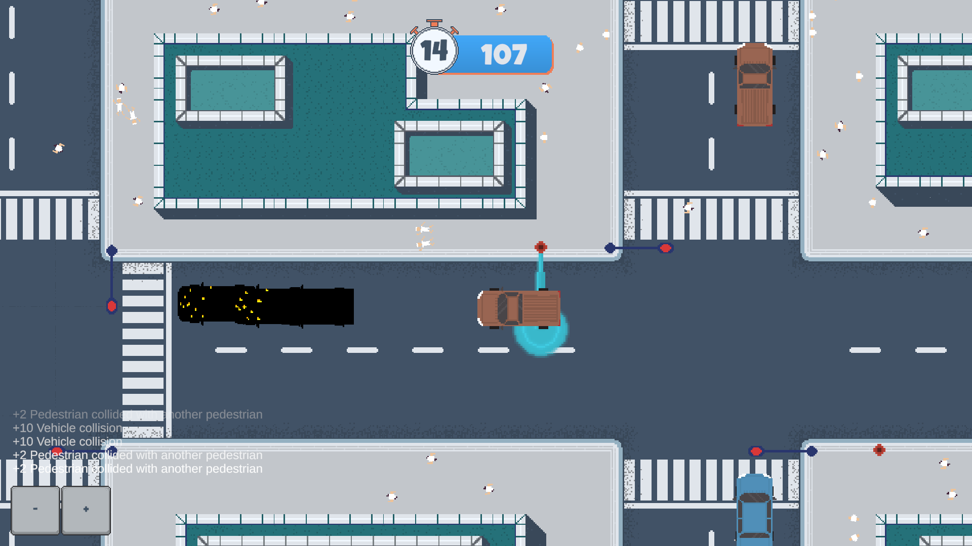 - Score points by causing as much chaos as possible in the city.